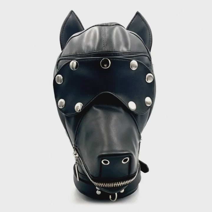 Our puppy dog mask is a full-face leather BDSM mask that provides an intense sensory experience. It completely covers the face, immersing the wearer in a world of darkness and restriction.